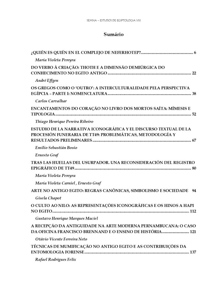 6) Semna – Estudos de Egiptologia VI, Antonio Brancaglion Jr., Cintia Gama-Rolland, Gisela Chapot., (orgs.). Rio de Janeiro: Editora Klínē (2019)(2ª Edição).
